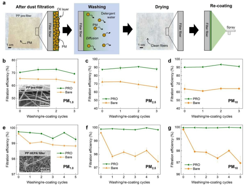 Корейские учёные обратились к естественным природным «технологиям» для улучшения качества фильтрации воздуха. Недавно они опубликовали исследовательскую работу, «вдохновлённую естественными фильтрующими способностями покрытых слизью носовых волосков». Разработанный ими фильтр с масляным покрытием (Particle-Removing Oil-coated filter, PRO) улавливает значительно больше частиц и сохраняет свою эффективность вдвое дольше, чем традиционный фильтр.